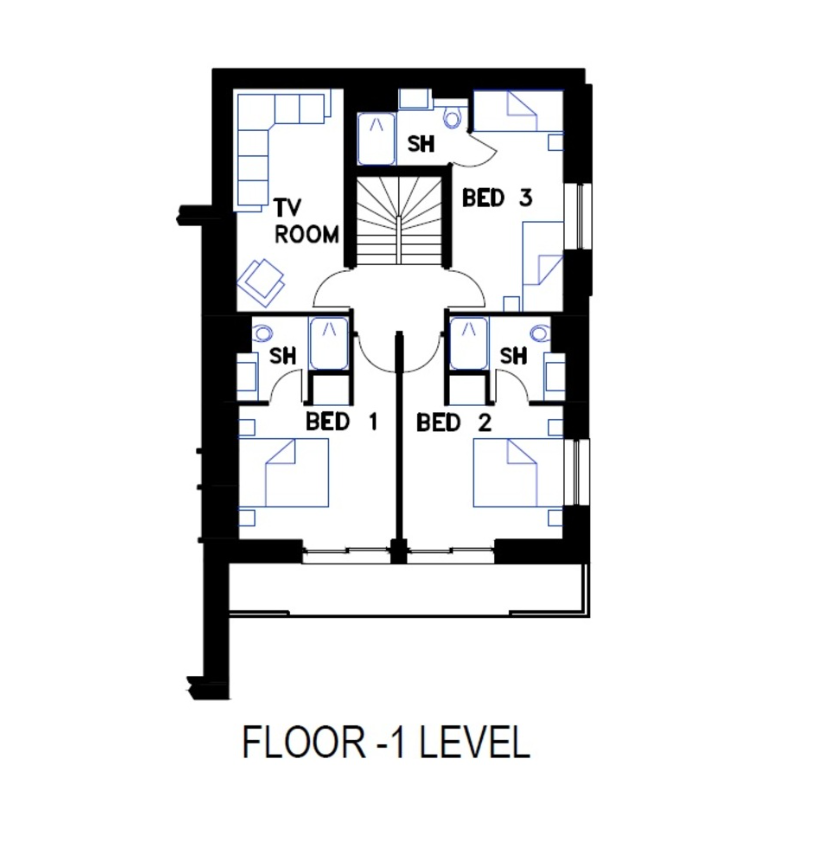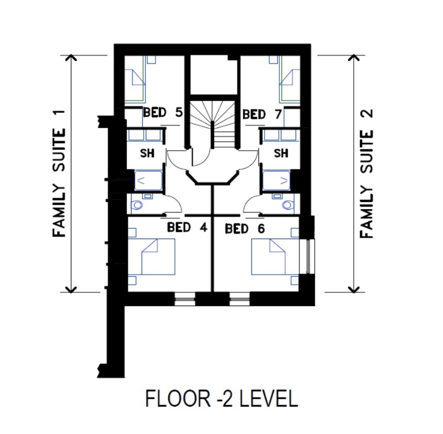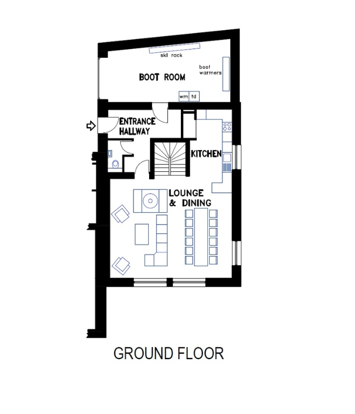 The chalet comprises of seven bedrooms: two king rooms, one twin, and two family suites, consisting of a king room, a bedroom with adult size bunkbeds, a bathroom and separate toilet. All rooms have 5* hotel standard mattresses, luxury mattress protectors, Egyptian cotton bedlinen, fluffy towels and luxury Cole and Lewis toiletries.