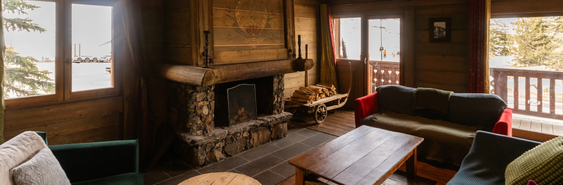 The Chalet hotel is built from timber in the traditional Savoie style and oozes charm and luxury inside and out. The interiors are cosy and comfortable with local wood panelling and a large lounge at the heart of the Chalet with inviting sofas around an open fireplace.
