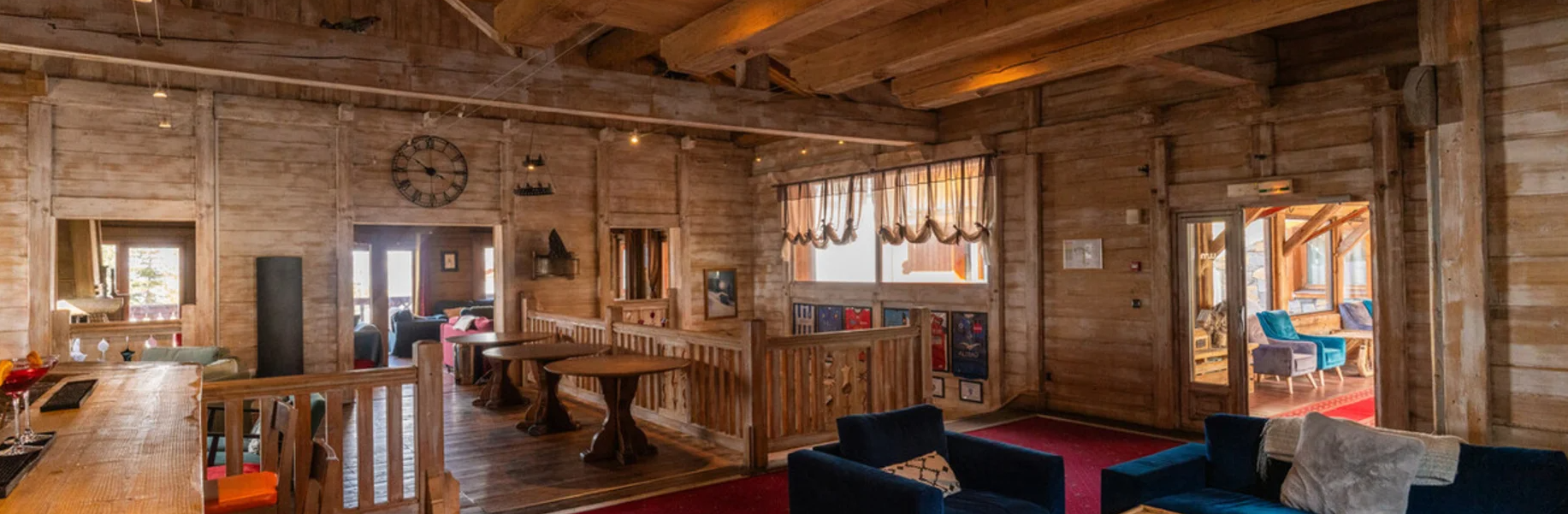 The traditional Savoie style flows through to the restaurant with small and large group tables available and a lively, fun atmosphere. Guest will also be able to dine in groups of two, three or four as they wish.