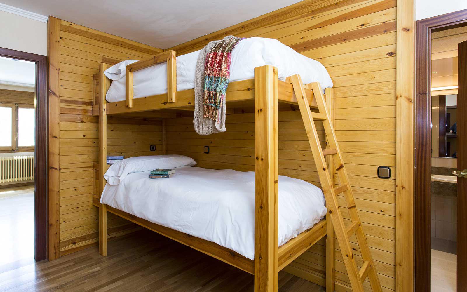 Quad rooms for 2 to 4 people - These large rooms have twin beds and built-in wooden bunk beds suitable for adults or children, separated from the main bedroom by a partition. Most rooms have a balcony or terrace. One of the rooms has 2 bedrooms, another has twin beds, while the other has bunk beds in a small room off the hallway. There is also a large terrace offering mountain views.