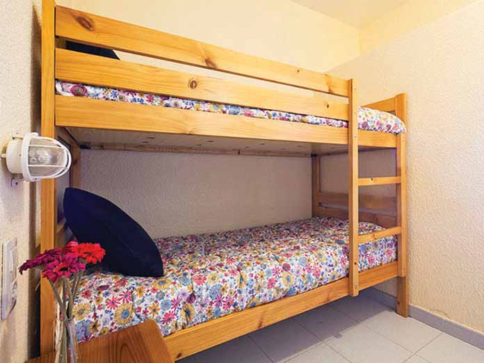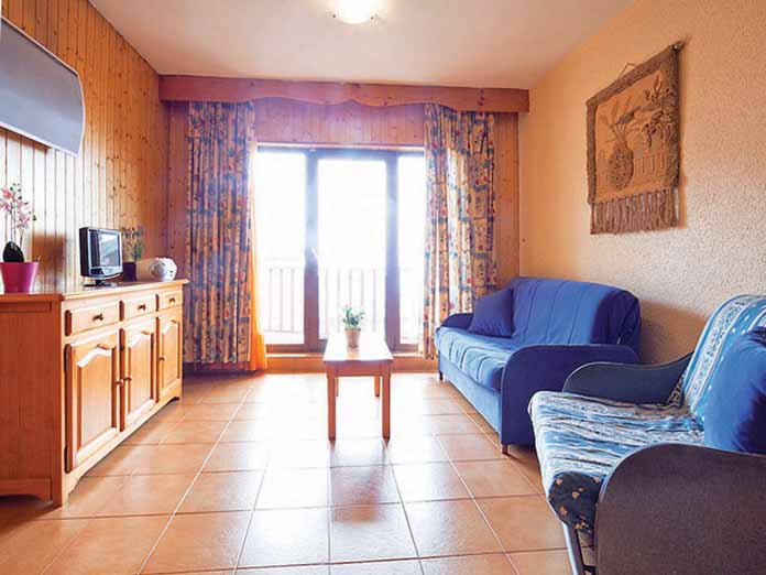 Type E apartments - sleep 2-6: living area with a double sofa bed, 1 double room and bunk beds in the alcove.