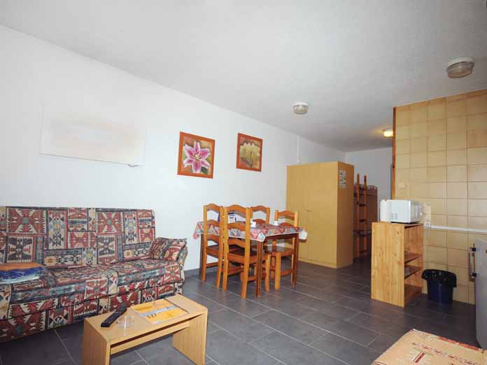 Type C studios - sleep 1-4: Living area with 2 single sofa beds and cabin area with bunk beds.