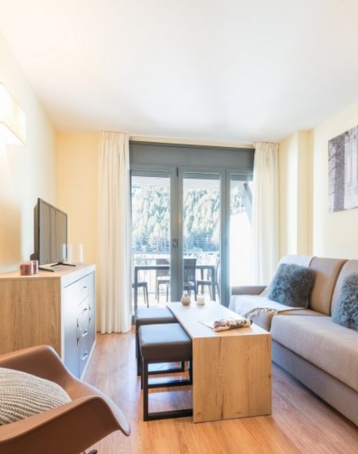 All accommodation has a large patio door leading outside and boasts stunning views over the mountains. Your apartment is a real mountain retreat and will offer you all the comfort and space you need to have an enjoyable holiday. Some apartments even have a terrace: perfect for getting your fill of vitamin D! Reception is just 500m away at the Andorra Bordes d'Envalira residence.