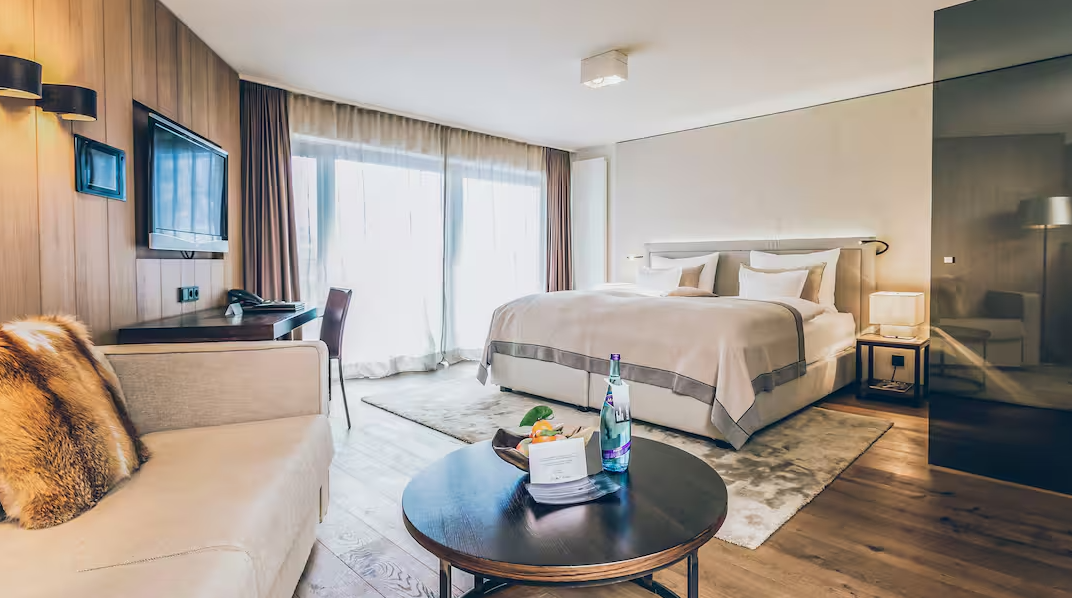 The hotel's directly opposite the gondola station, so you can swoosh off in the morning and ski back to the door. And when you've hung up your boots, the penthouse pool is the perfect place to have a dip while taking in those piste views. There's a steam room and Finnish sauna too, so you can really get the relaxation in. And for some cosy après, treat yourself to a cocktail from the hotel's bar and curl up in the lounge by the roaring fireplace.