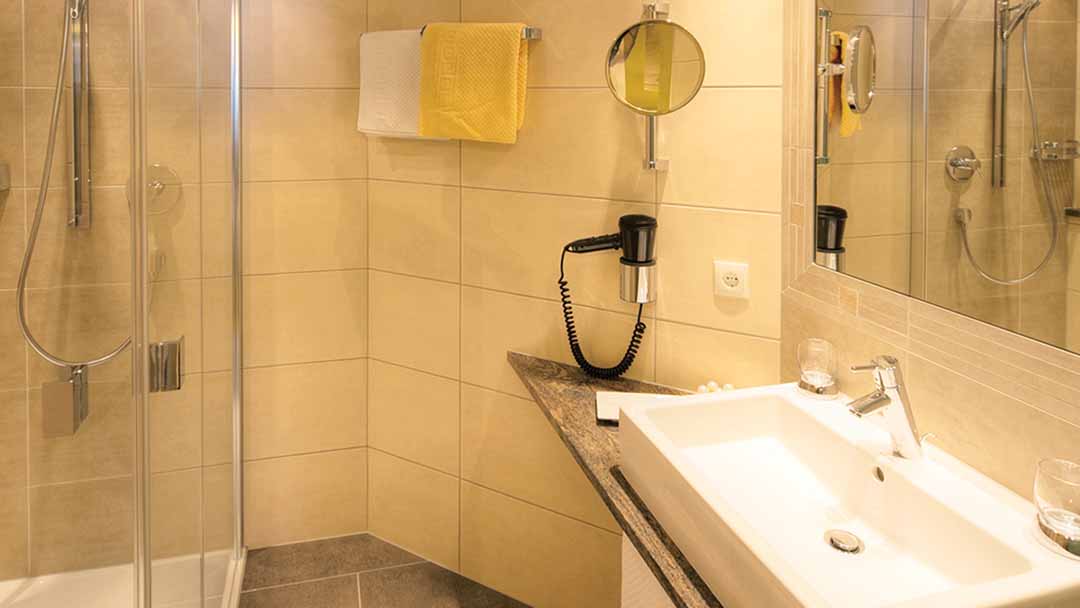 Twin Room - sleeps 2-3: Austrian twin beds, extra single bed on request, private shower and WC.