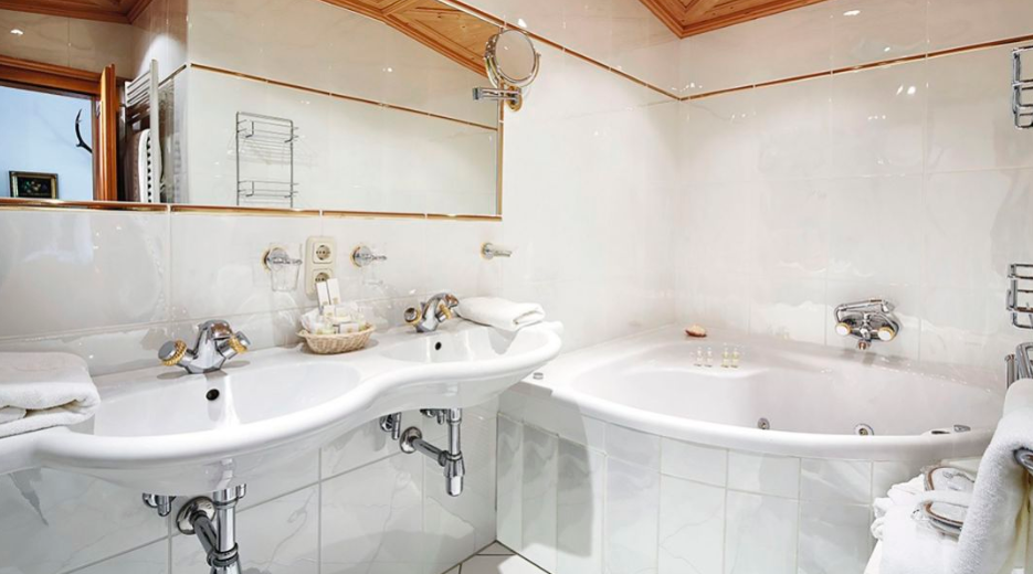 The design of the hotel is impeccable - really stylish, with a huge nod back to classic Tyrolean arcitecture, and all the comforts you'd expect from a top quality modern hotel. The rooms are very generous in size, each individually decorated with antique furnishing and so elegant that you might not want to leave. But make sure you do - Kitzbühel's incredible skiing is waiting for you. On top of all that, the excellent Spa de Charme, member of the Leading Spa Resorts, with sauna, steam bath and whirlpool along with indoor pool are free for you to relax in after a day out on the mountain.