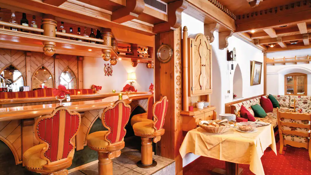 The hotel’s chalet-style exterior fits in perfectly with its surroundings. And the inside doesn’t disappoint either – there's plenty of classic Austrian charm, with carved wooden ceilings, an ornate bar, and black and white images of Lech. And the owner, Alexander Wolf, is a real character too. He loves to entertain his guests either at the bar or in the hotel restaurant and can often be seen out skiing.
