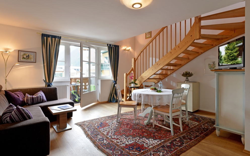 Apartment “Rosmarin” 85m² | 4 - 6 Persons Private apartment featuring a double room, lovely living room, spacious bath room with bath tube and extra shower, hairdryer, two toilets, flat TV, south – facing balcony, telephone, safe, free Wi-Fi access and lovely kitchen. Centrally located on the first floor in “Haus Andrea”.