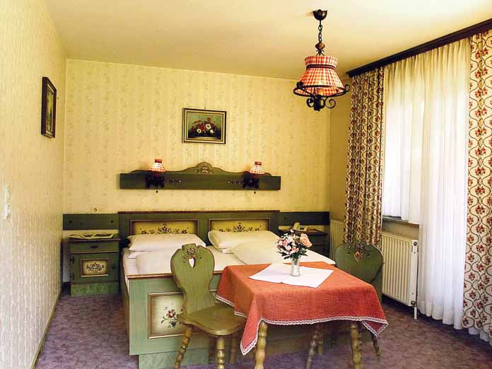 for 2 people on bed and breakfast sharing a room with Austrian twin beds, private shower and WC. Triple rooms with an extra put up bed and family rooms sleeping max 2 adults and 2 children with bunk beds are also available. All bedrooms have a TV. Separate beds are available, please request at the time of booking.