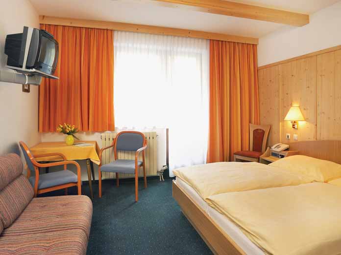 for 2 people on half board sharing a small room with Austrian twin beds, private shower and WC. Standard rooms sleeping up to 3 adults with balcony are available at a supplement. 35m² junior suites with private bath, shower and balcony are also available at a supplement. All bedrooms have cable TV and safe.