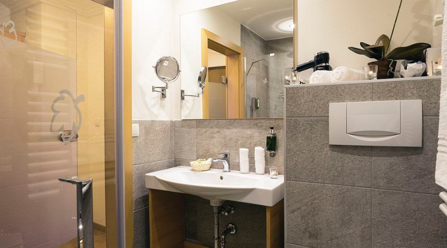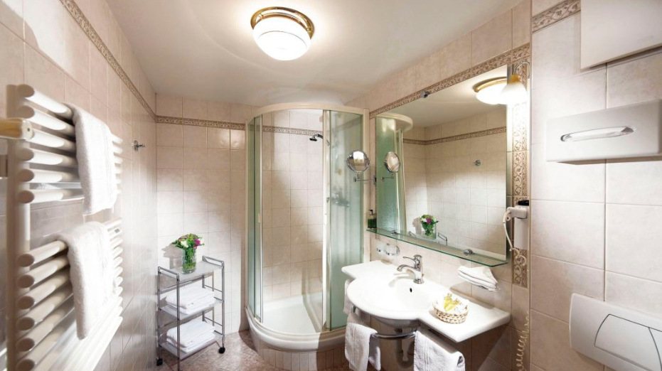 • Twin Room - sleeps 2-3: Austrian twin beds, extra single bed, private bath or shower, WC and balcony.