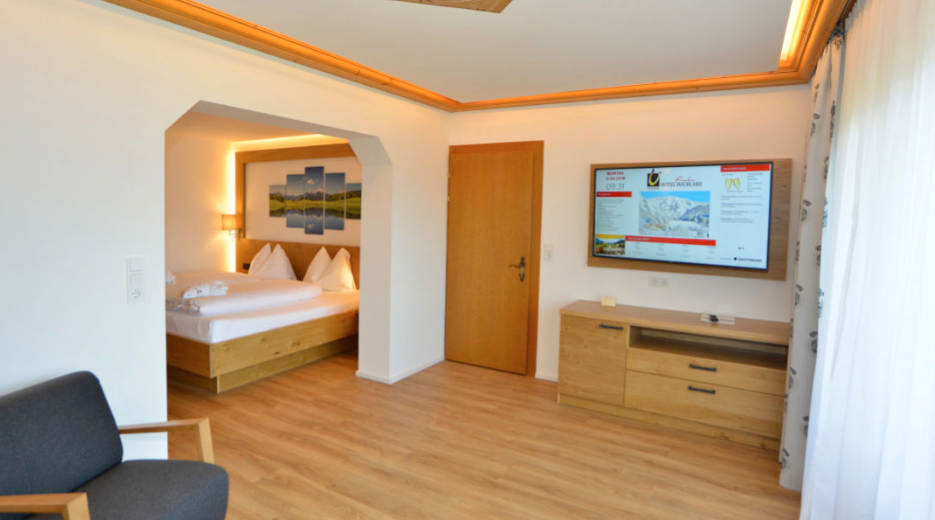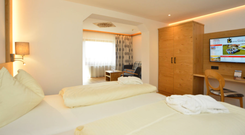 Decor-wise the Hochland is fairly traditional - lots of natural wood and knick-knacks gathered over generations, highlighting the history of the region - but with plenty of modern elements thrown in too. Also the rooms are very spacious and the vast majority have a balcony or terrace. The service is friendly and welcoming - it's all about feeling relaxed. And to help with that, there's an excellent wellness centre for some chill-out time and perhaps a massage. Afterwards you could take a dip in the indoor pool.