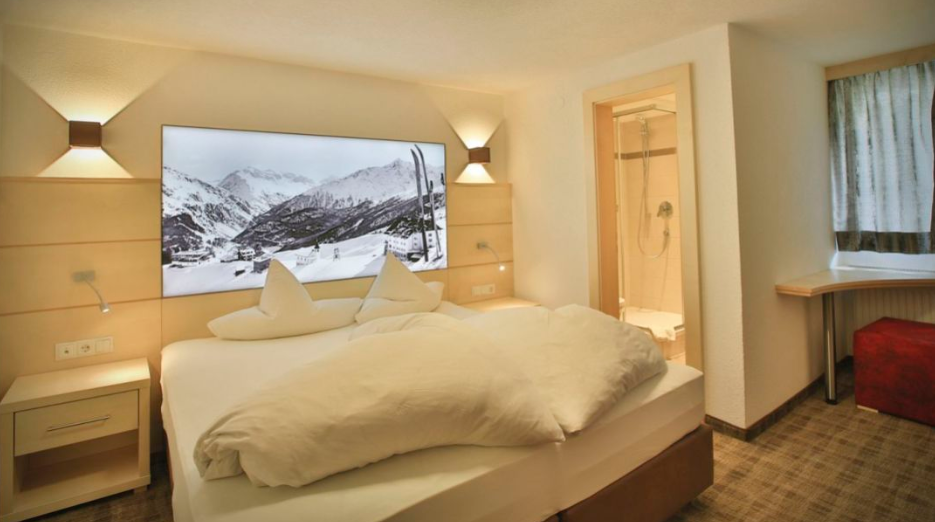 And even when you're not on the snow, you don't have to make your way over to Sölden for entertainment, because the guesthouse has its own wellness area, ideal for unwinding. You can detox in the sauna, or cleanse your lungs and skin in the steam room before making your way to the sensory shower to experience different moods and sensations. Then, to top it all off, you can chill out on one of the water beds or admire the mountain views from the relaxation area. Quite tempting, I think you'd agree?