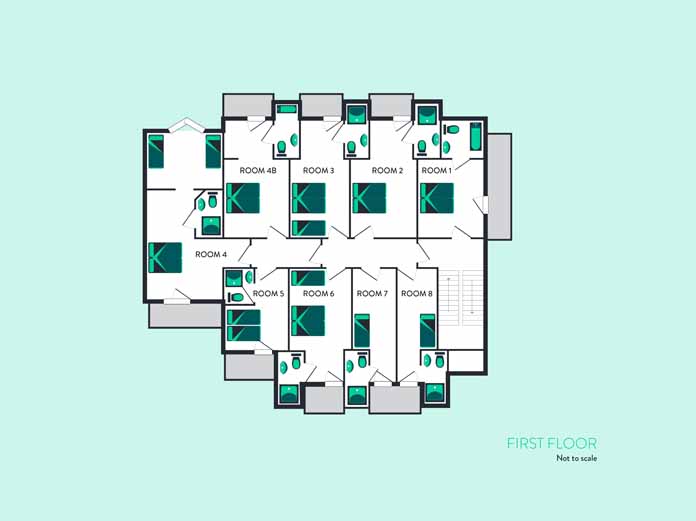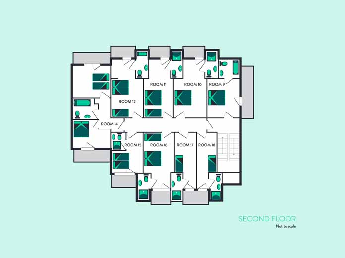 Single Room – sleeps 1: Single bed, private shower, WC and balcony.