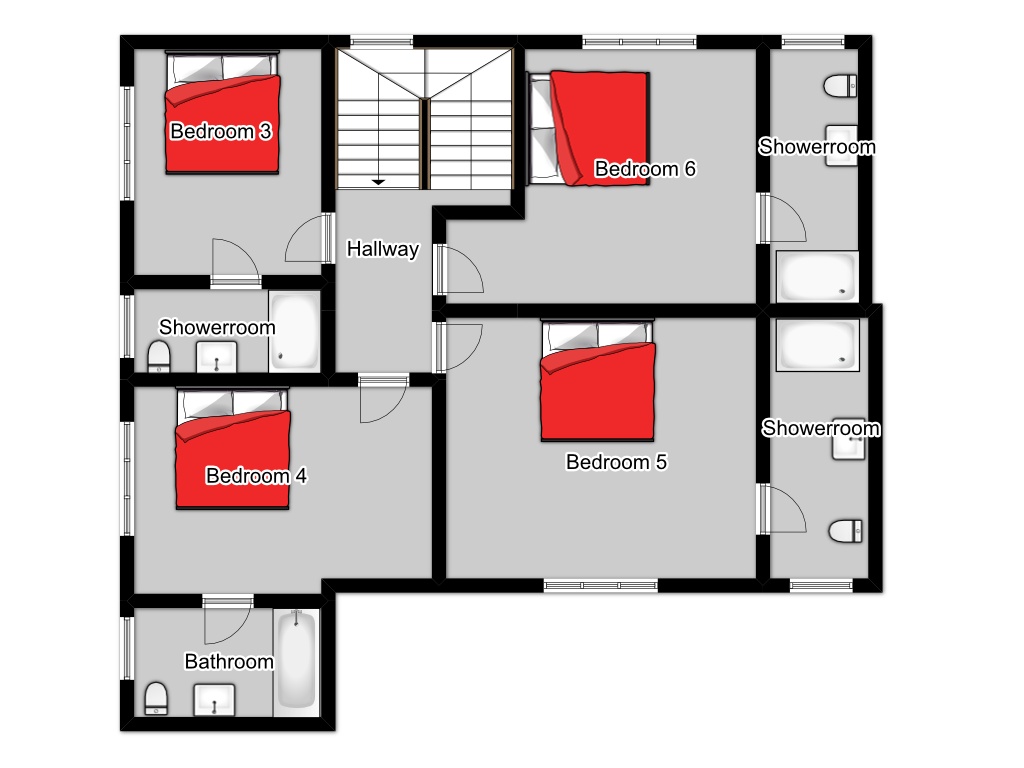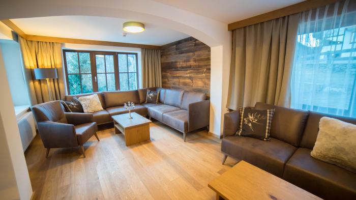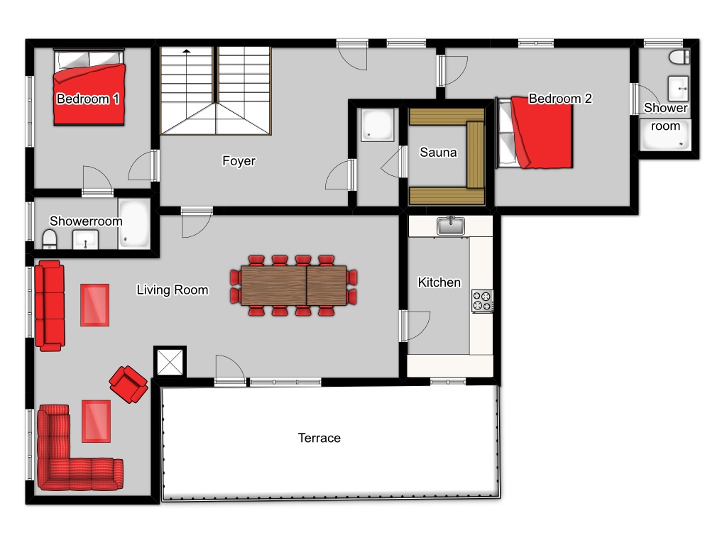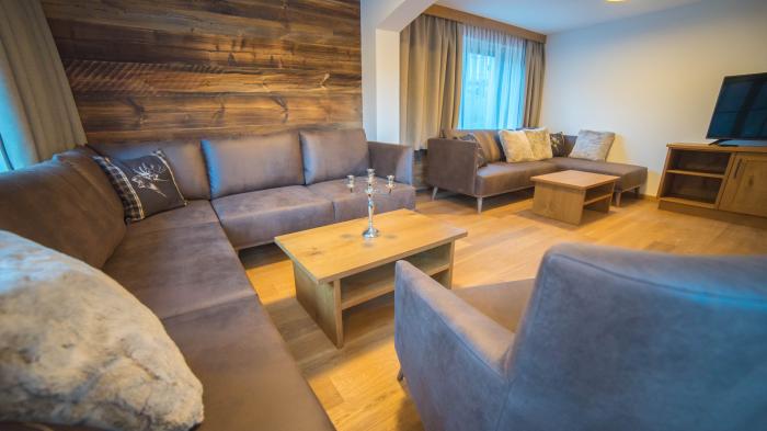Amelia 12 is a self contained duplex apartment on the ground and first floors. A large terrace opens off the open plan living and dining area giving views over Rendl to the South. The comfortable living area will provide the perfect spot to sit back and relax for afternoon tea or getting together for canapes and aperitif before dinner. All bedrooms are en suite, with two on the first floor and the remaining four bedrooms on the upper floor and are approximately 13-14 square metres. There is also the added advantage of your own sauna to help soothe those muscles at the end of your ski day!
