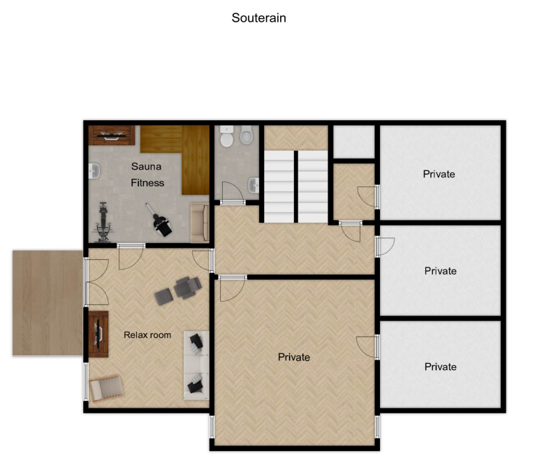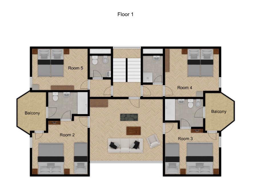 On the first floor, there is additional space to retreat, including a second living room, perfect for reading a book or enjoying a game in peace. There are also four bedrooms: two double-to-triple rooms with ensuite bathrooms and two double rooms with a shared bathroom and WC.