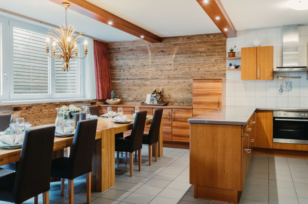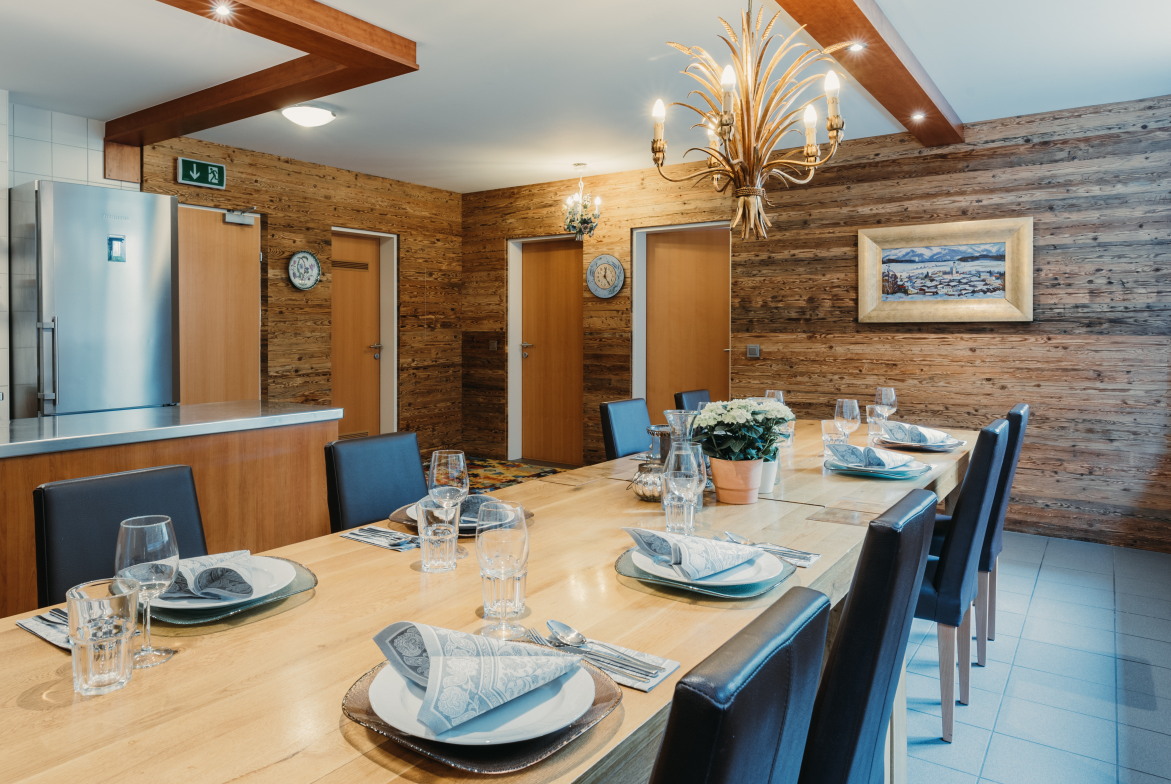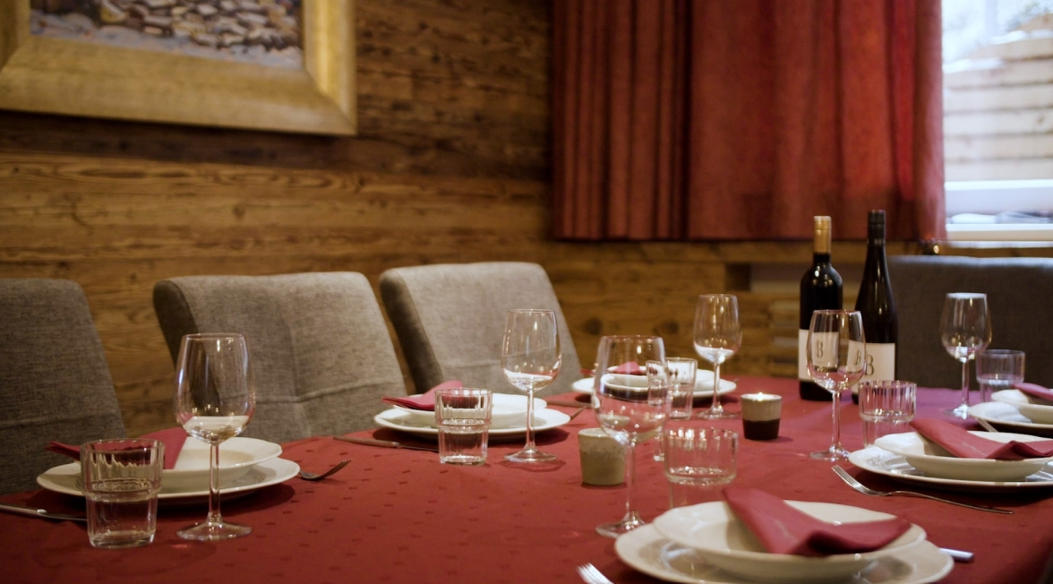 In the separate dining room, our chalet hosts provide a delicious, extensive breakfast and in the evening a tasteful 3-course dinner.