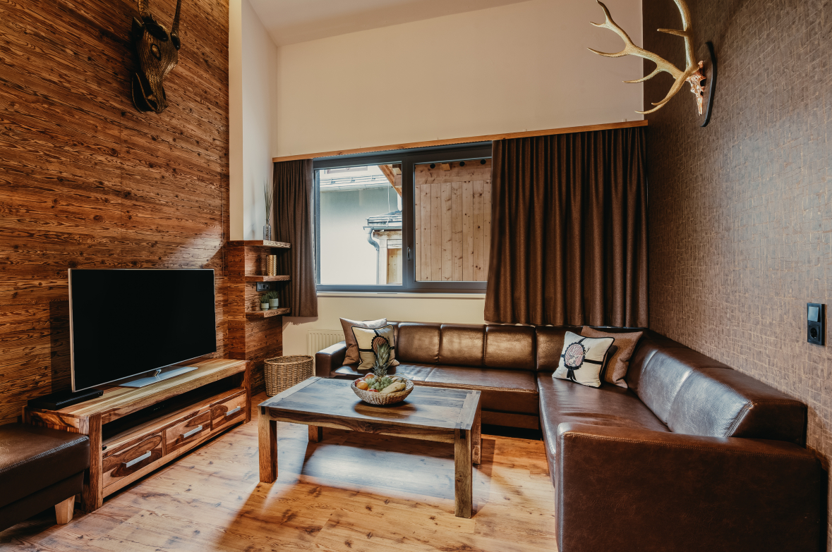 The bedrooms, with warm wooden accents, have been decorated with great care. The rooms all have comfortable en suite bathrooms so that everyone can prepare for a new day in a relaxed way. The cosy living room with 2 sitting areas has large windows that offer you a beautiful panorama of the mountains. You can also access the sunny balcony through the living room to enjoy the fresh air and the view. The chalet is equipped with a sauna to relax the muscles at the end of the day.