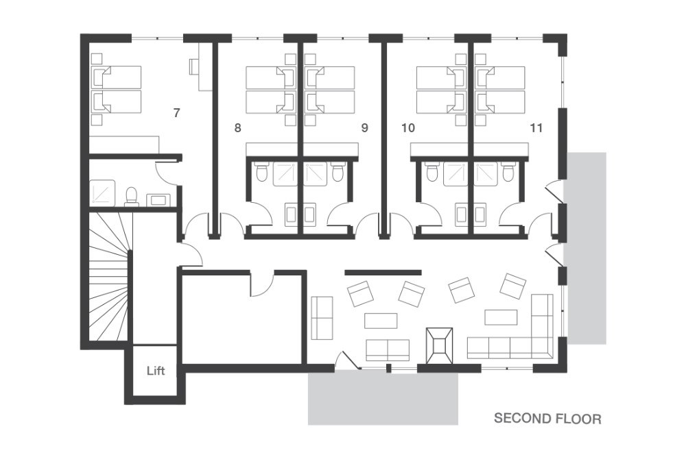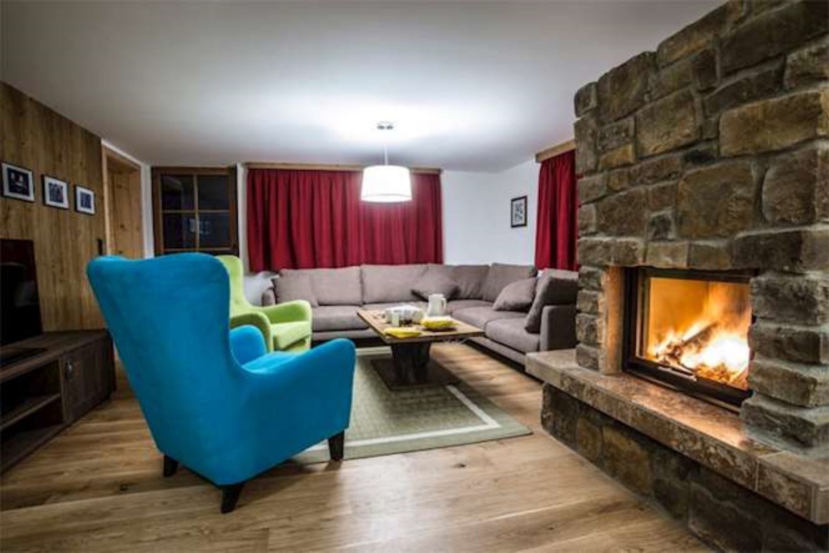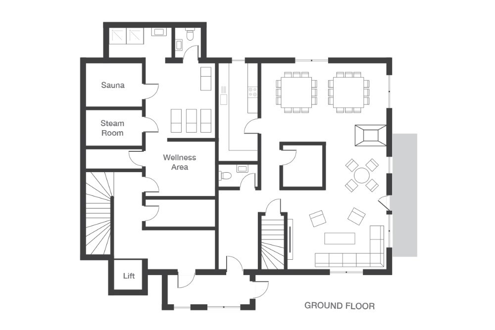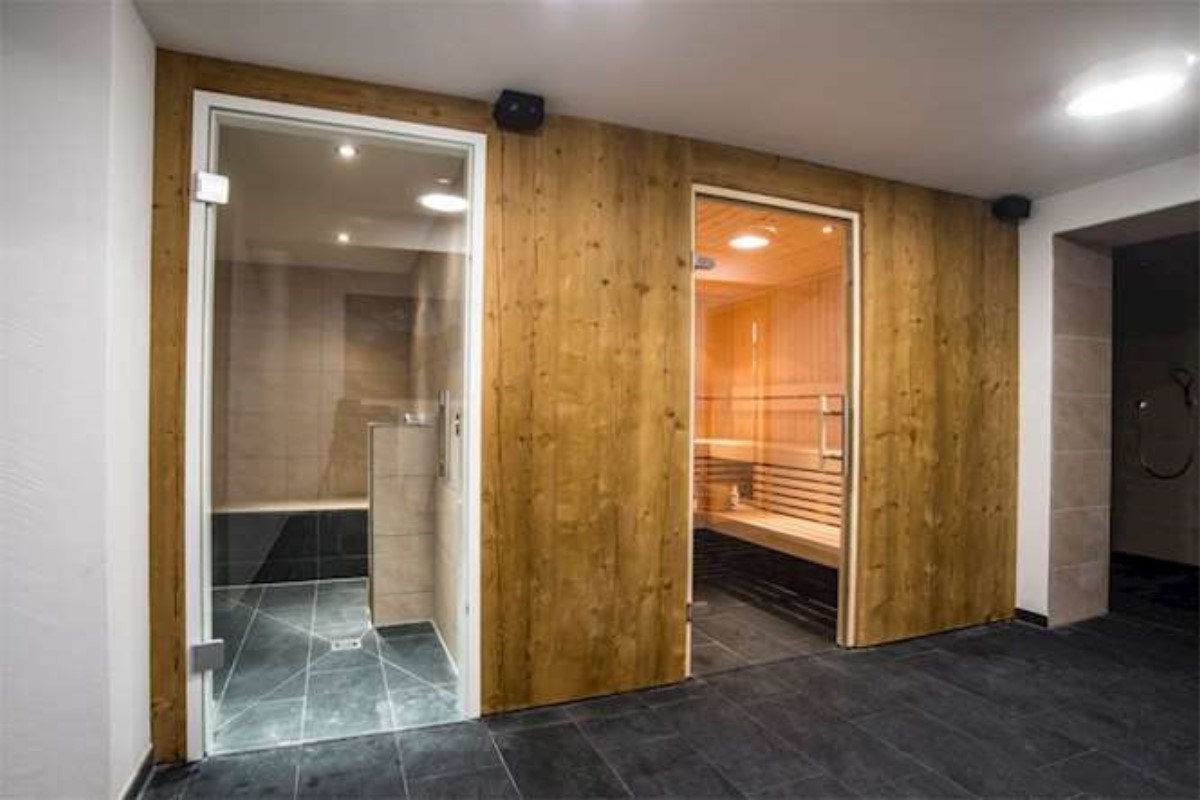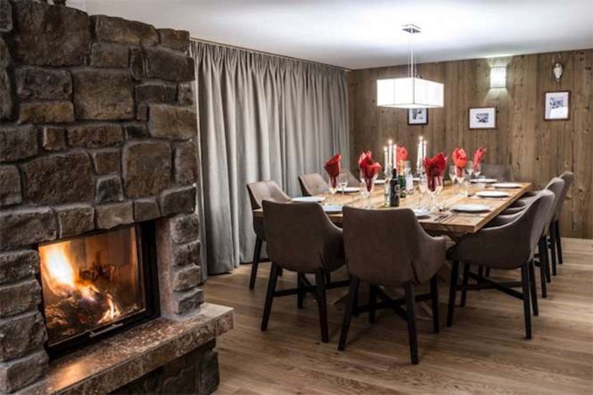 Spanning the first and second floors are 11 spacious bedrooms, all have en suite shower, three with balcony and spectacular views. Downstairs on the ground floor there is a wellness area with sauna and steam room, the ideal place to relax after a day on the slopes. For guests’ convenience, a chauffeured vehicle service runs to and from the piste daily until 8pm.