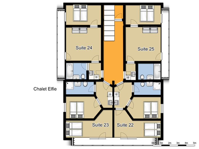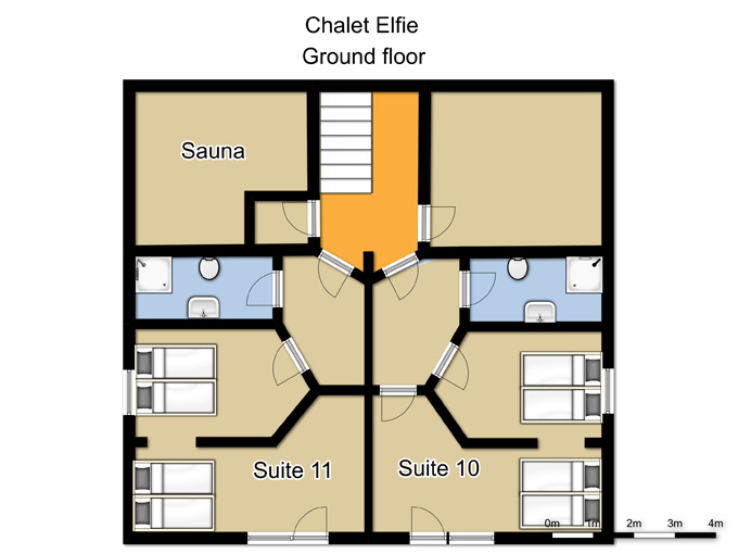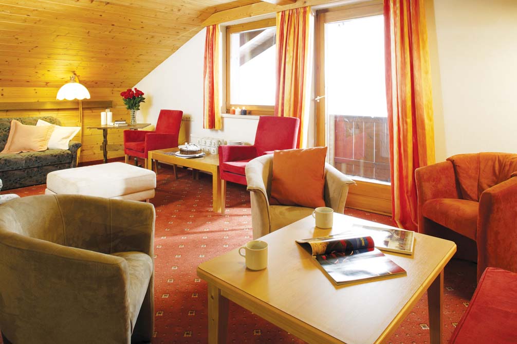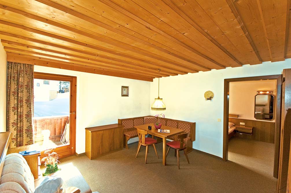 All the Elfie’s spacious suites sleep 2-4 guests in two separate sleeping areas, comprising an Austrian twin bedroom and a separate room with fitted corner table and seating, plus either an Austrian twin bed or an Austrian twin sofa-bed. As we allow the suites to be occupied by just two guests if you wish, these suites offer a unique opportunity for two friends to have separate sleeping quarters at minimal additional cost!
