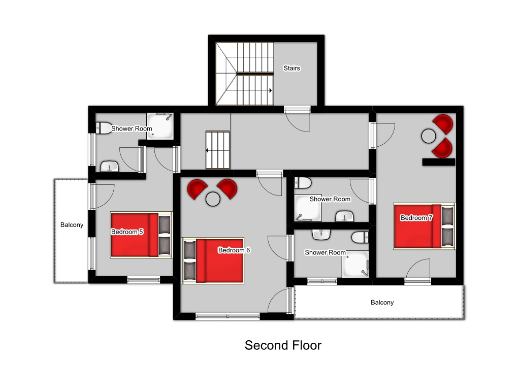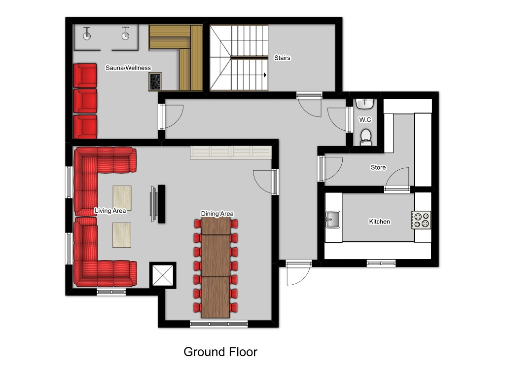 Offering a lovely standard of well furnished accommodation, the design, style and decor will be very similar to those enjoyed at Hattie, Belle and Amelia chalets (also designed by Karl Fahrner). The chalet will have 7 twin bedrooms, at least three are extremely spacious at over 18 square metres, the rest still a good size between 12 to 15 square metres. All will benefit from modern ensuite facilities, mostly showers but a couple with baths and the majority will also have balcony access too. The living area will have an open fireplace so perfect to sit back and enjoy your canapes and aperitif. Naturally, the chalet will also have its own Wellness area with sauna.