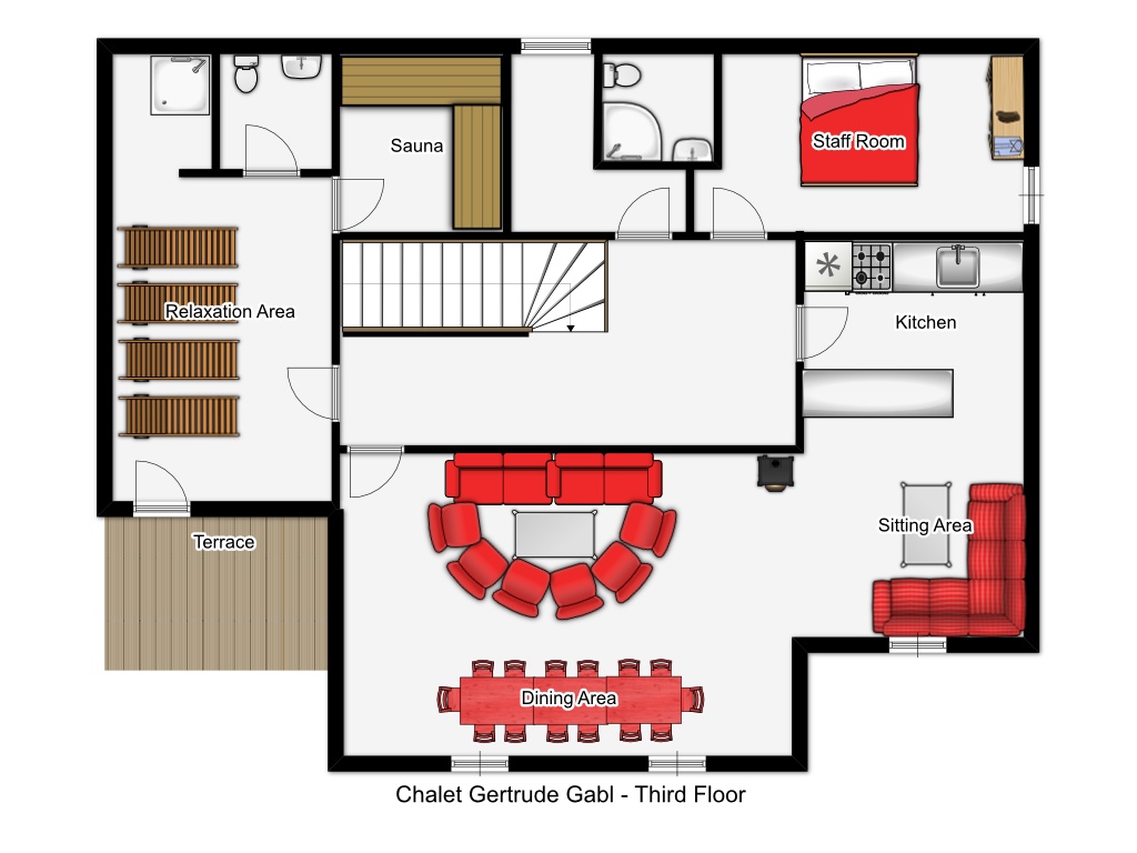 A wonderful sauna and relaxation room to relax the muscles after a day on the perfect slopes. The bedrooms all have an en suite bathroom so you don't have to wait for each other in the morning. Our chalet hosts prepare an extensive breakfast buffet to start the day right. At the end of the day you can relax with a drink while dinner is being prepared for you.