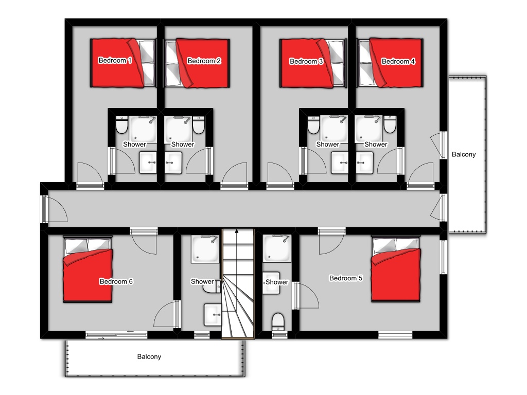 Room 1 - Twin with en suite shower, basin & WC, private balcony