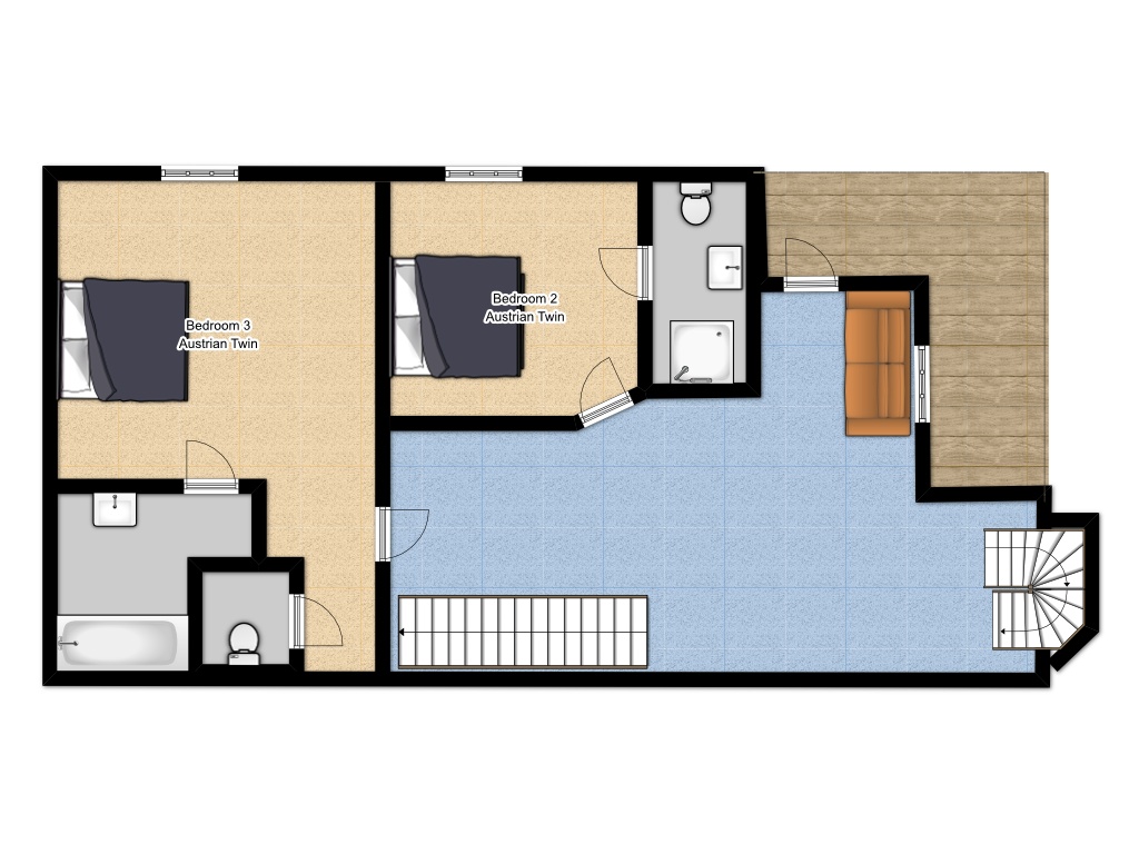 Positioned up in the wooded Mooserkreuz area of St Anton, this wonderful, virtually ski in/ski out apartment is situated on the first floor of an attractive Tyrolean chalet and has lovely views across the main downhill run and across to the village itself. There are three ensuite bedrooms with the added advantage of a mezzanine floor with two extra beds, ideal for whole groups of 8. The apartment has been beautifully decorated and renovated by its Austrian owner maintaining traditional wood carvings in decor and furnishings.