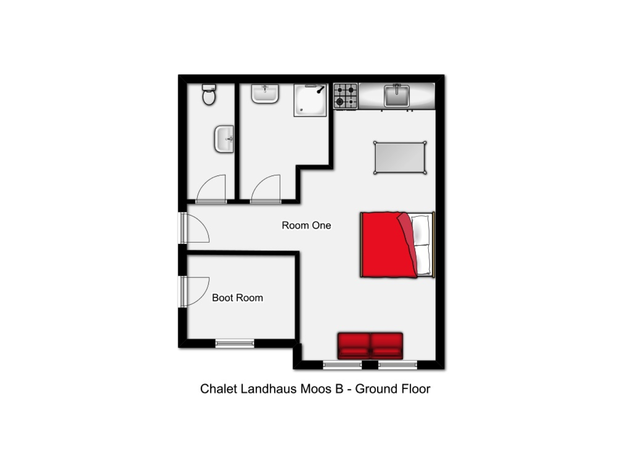 Room 1 - self contained spacious studio with double sofa bed plus additional single sofa bed, ensuite shower & basin, separate wc. Supplement of £25pp.