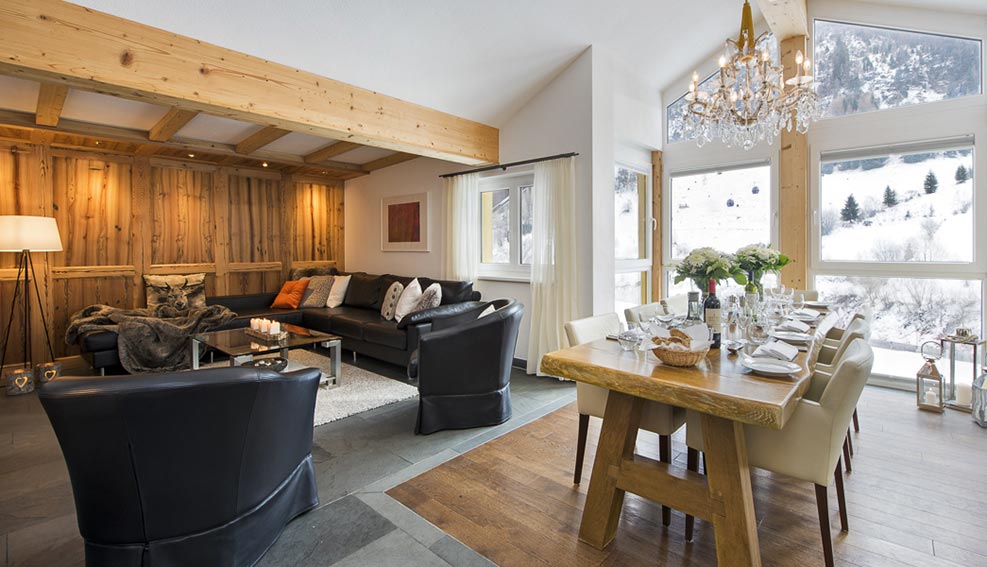 Situated right in the heart of the village, just set slightly up from the main Galzig and Rendl lifts, this fantastic top floor penthouse apartment offers large comfortable accommodation for groups of up to eight. The wonderful open plan living / dining room has a cathedral window overlooking the Rendl slopes and with its contemporary cutting edge up to date design, it really does provide the perfect home in which to relax after a hard day on the slopes. The four bedrooms are all ensuite and there is even the added benefit of a building sauna on the ground floor - always helpful for the weary legs of those brave enough to take on the summit of Valluga!