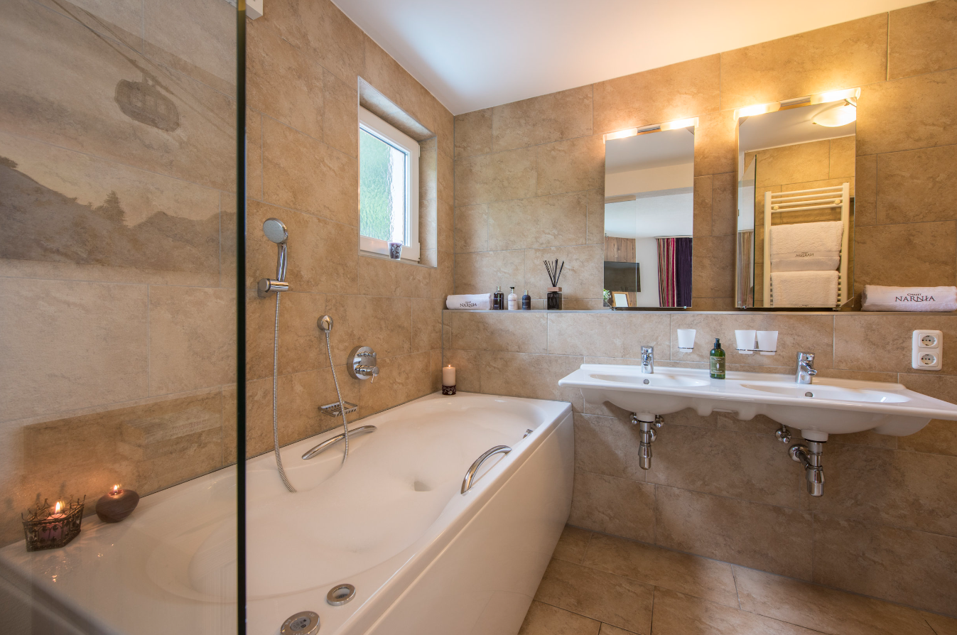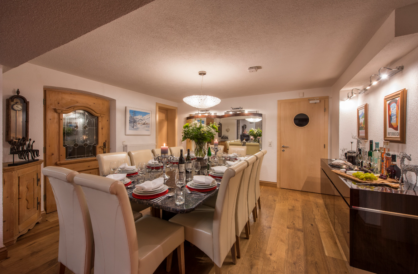 Mountain views from its' windows and balconies (the ground-floor balcony wraps around the living room to the fabulous whirlpool area) are of the thickly-wooded lower slopes of the Rendl ski area. our klafs sonarium (with both sauna and separate steam-room functions) and our highly-regarded (commercially-rated) whirlpool spa helps ease those tired limbs after a hard-day on the slopes….