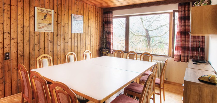 An attractive, older style chalet in a wonderful location at the top of the Nasserein nursery slopes. The lounge is bright and airy with wonderful views down the slopes and across the valley. Good intermediate skiers are able to ski back to the chalet and down to the lift in the morning, conditions permitting, there is a short off-piste section to be negotiated. The ski bus stop is just 300 metres away (2 minutes to Nasserein lifts or 5 minutes to St. Anton), or it is a 9 minute walk into Nasserein centre and a 20 minute walk into St. Anton.