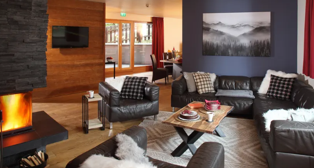 The chalet style is smart and contemporary, with open-plan living and dining areas including a cosy log fire. All bedrooms are en suite and some have shared balconies and terraces to give a light and airy feel.