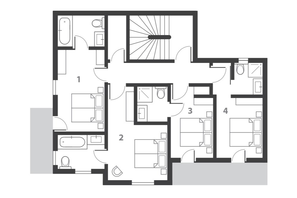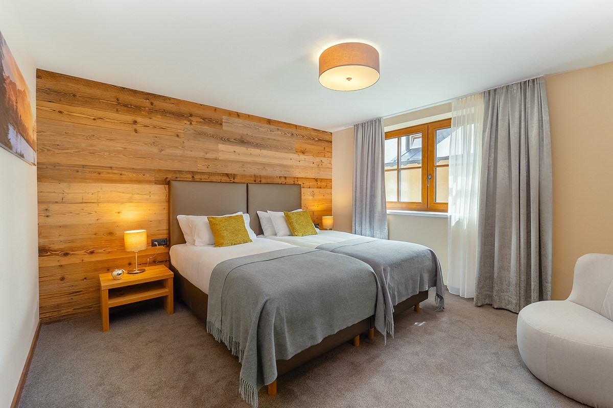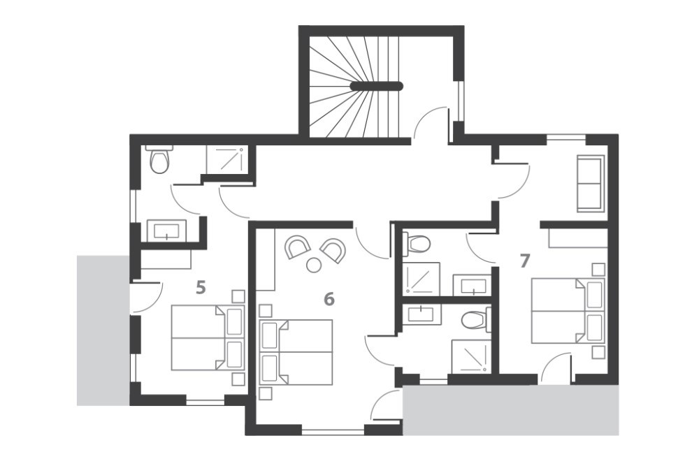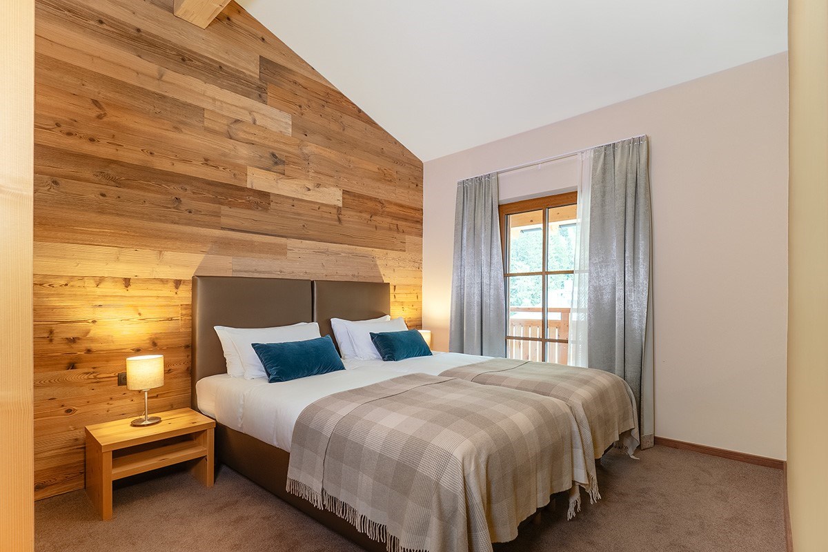 The chalet sleeps 14 guests in seven en suite bedrooms. The bedrooms span the first and second floor of this chalet, and all offer spacious, bright and comfortable accommodation. In each bedroom the beds can be made as either double or twin, and six of the rooms have a balcony.