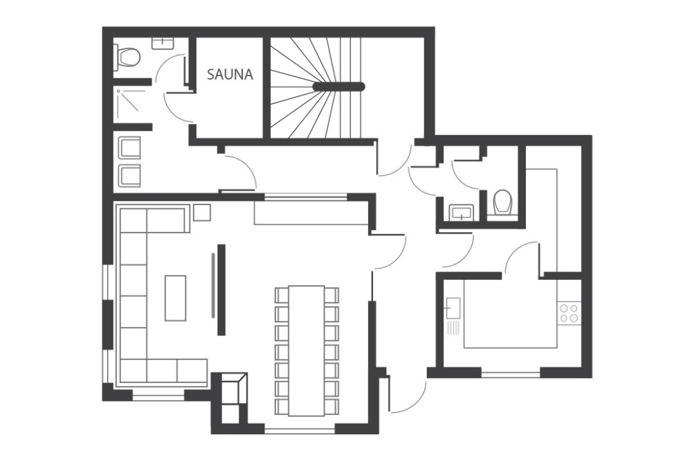 The chalet interior is stylishly simple in design, with timber walls and clean lines. The open plan living-dining area provides a sociable space in which to relax after a day on the slopes, and where you will enjoy the 3 course evening meal, freshly prepared by your dedicated chalet hosts. The chalet also boasts a sauna with a small relaxation area for two. There is off-road parking for those looking to self-drive.
