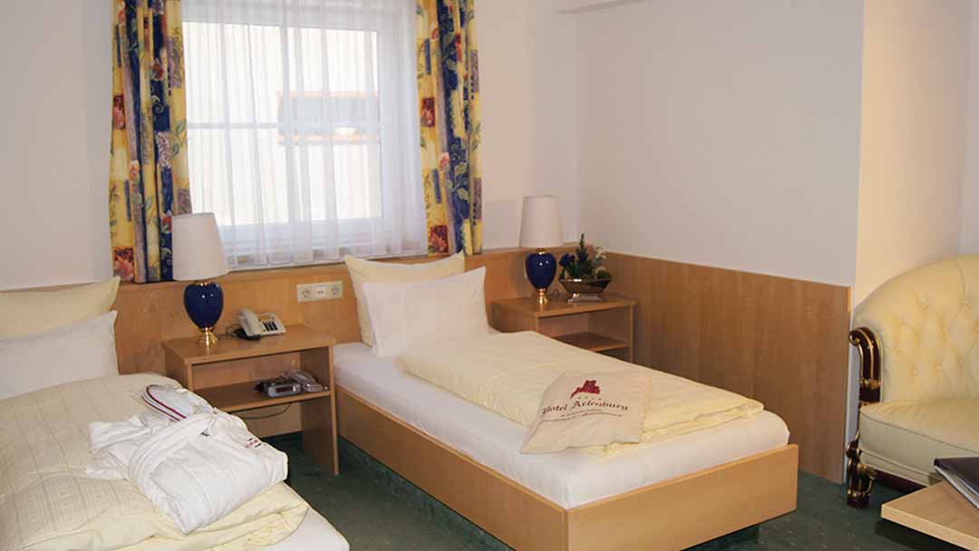 Dreibettzimmer twin room - sleeps 3: Austrian twin beds, single bed, private bath and WC.