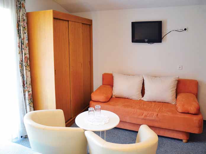 For 3 people on bed and breakfast sharing a room with Austrian twin beds and a single bed, private shower and WC. Austrian twin rooms are available at a supplement.