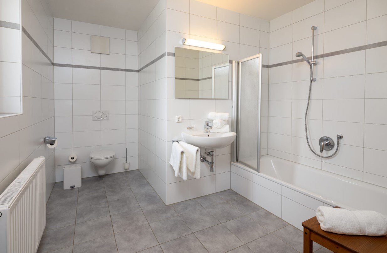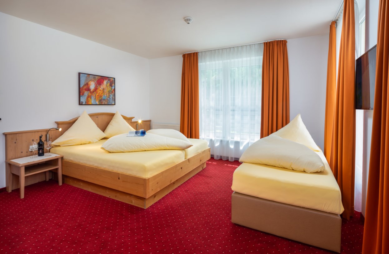• Twin/triple room with three single beds, en-suite bath, WC, basin, flat screen TV, balcony