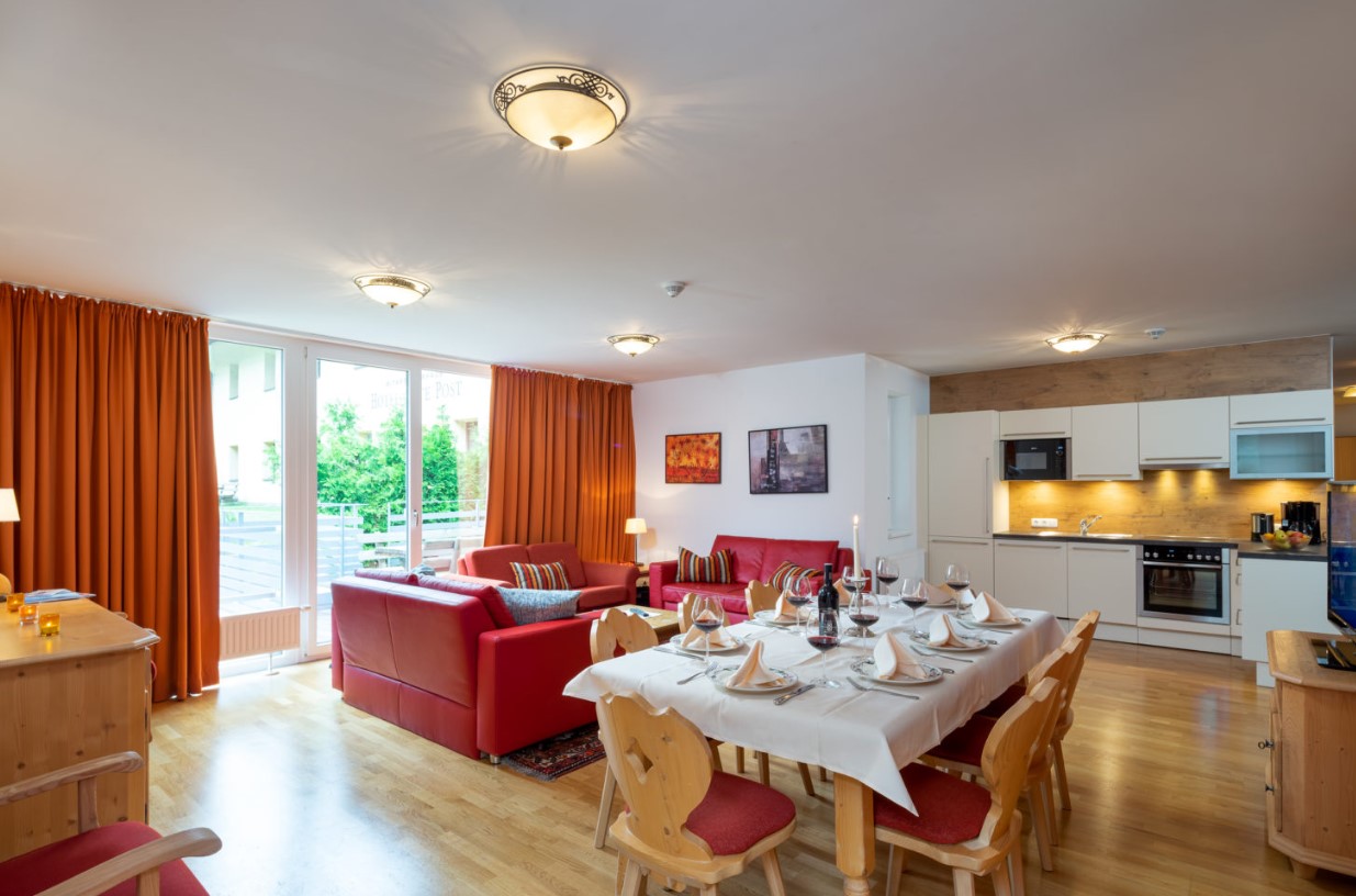 • Living room, flat screen TV, guests kitchen (chalet staff don’t cook here), balcony/terrace