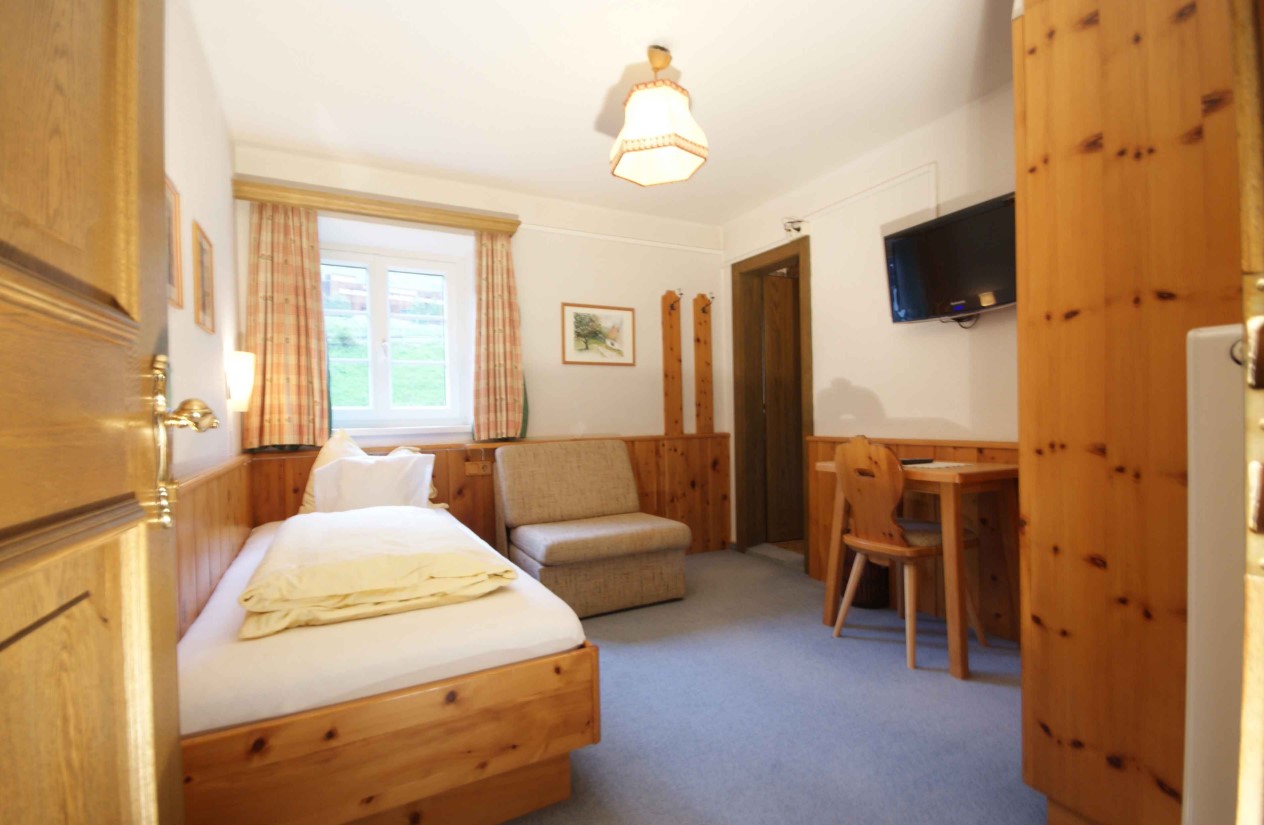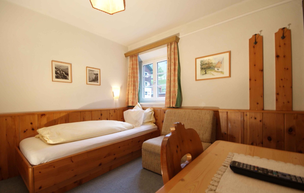 Superbly located directly in the very heart of St Anton, yet pleasantly at the pedestrian zone. Only 250 metres from the main ski lifts and slopes. This chalet is one of the best situated catered chalets in St Anton. Right in the original centre of this hugely popular Alpine village and there is an abundance of shops, restaurants, après-ski bars and nightlife at your fingertips. All eight bedrooms have their own full bathroom with shower or bath, WC, basin and all have a flatscreen TV and are tastefully decorated. The light and airy living and dining room has the traditional ‘stubben’ style with comfortable bench-style seating around the tables. The chalet is a wonderfully warm and cosy catered chalet. Built in a traditional Alpine chalet style it is rustic and charming. There is a ski locker and boot dryers/warmers guarantee you’ll start your day with a smile. Ski school and ski hire shop, where you can also leave your skis and boots, are closeby. Sauna, wellness and indoor swimming only 80 metres from the front door. Park your car for free at the chalet. Your excellent dinner will be served in the four star Sporthotel St Anton, just 150 metres from your chalet.
