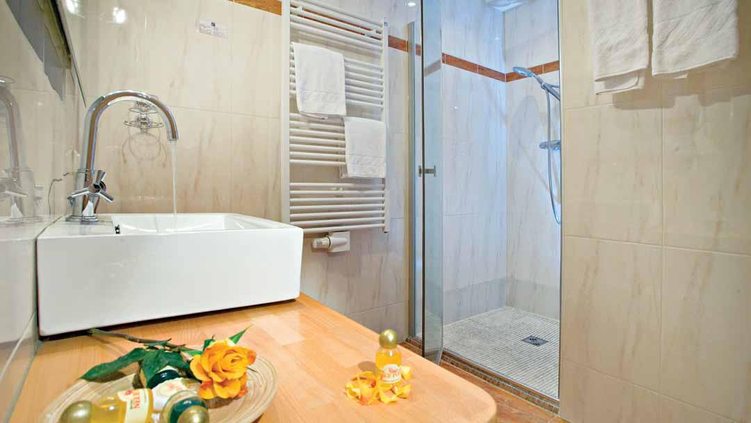 Grande twin room - sleeps 2-4 (max 3 adults): Austrian twin beds, double sofa bed, private bath or shower and WC.
