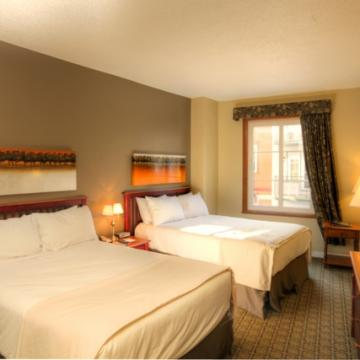 Hotel rooms come with a range of bedding configurations. Studios and Suites all have fireplaces, fully equipped kitchens plus one bathroom per bedroom.