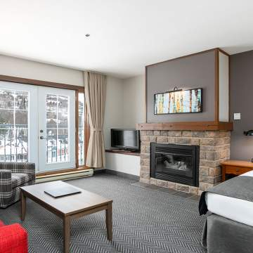Tour des Voyageurs is an ideal choice for families looking for slopeside convenience and the flexibility of self-catered accommodation. The Tour des Voyageurs has a nice ski-in/ski-out location at the foot of the Tremblant cabriolet and the slopes, shops, restaurants and bars are all within easy reach. The hotel's luxury guest rooms and condos have access to a sauna, fitness room and outdoor whirlpool, perfect after a good day on the slopes.