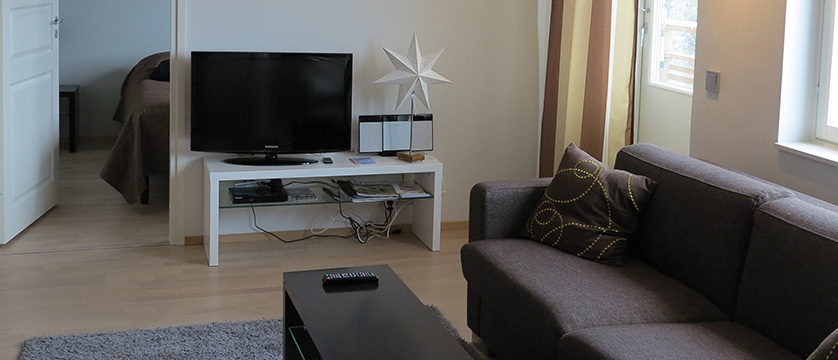 All have sauna, shower, wc, fireplace, balcony, fully-equipped kitchen with oven, microwave, fridge, kettle, coffee-maker, toaster, dishwasher, flat-screen TV, CD-player, hairdryer, drying closet, washing machine. Living/dining room. Linen, towels and final clean included.