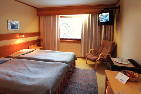 An atmospheric, friendly hotel situated in the traditional unspoiled Lappish village of Äkäslompolo. It enjoys a highly scenic and peaceful wooded location with miles of cross-country ski trails starting from the door. Its popular bar, dance floor, restaurant and night club form the hub of local entertainment.