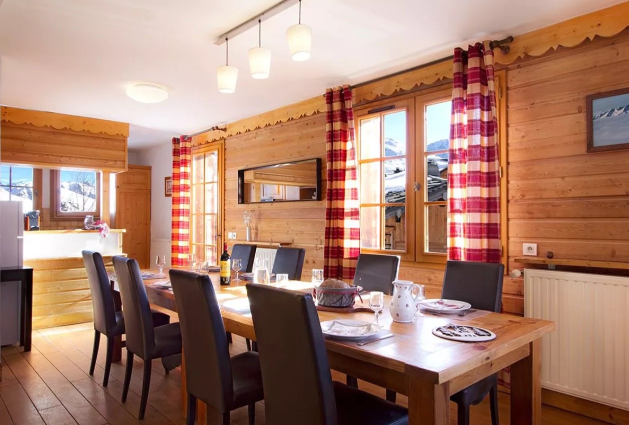 The open plan layout of the dinning area and kitchen make for the chalet to be an extremely social place to be. Guests can gather round the dinning room table and talk with their hosts, getting the 'locals knowledge' on where best to go for those freshly groomed pistes.