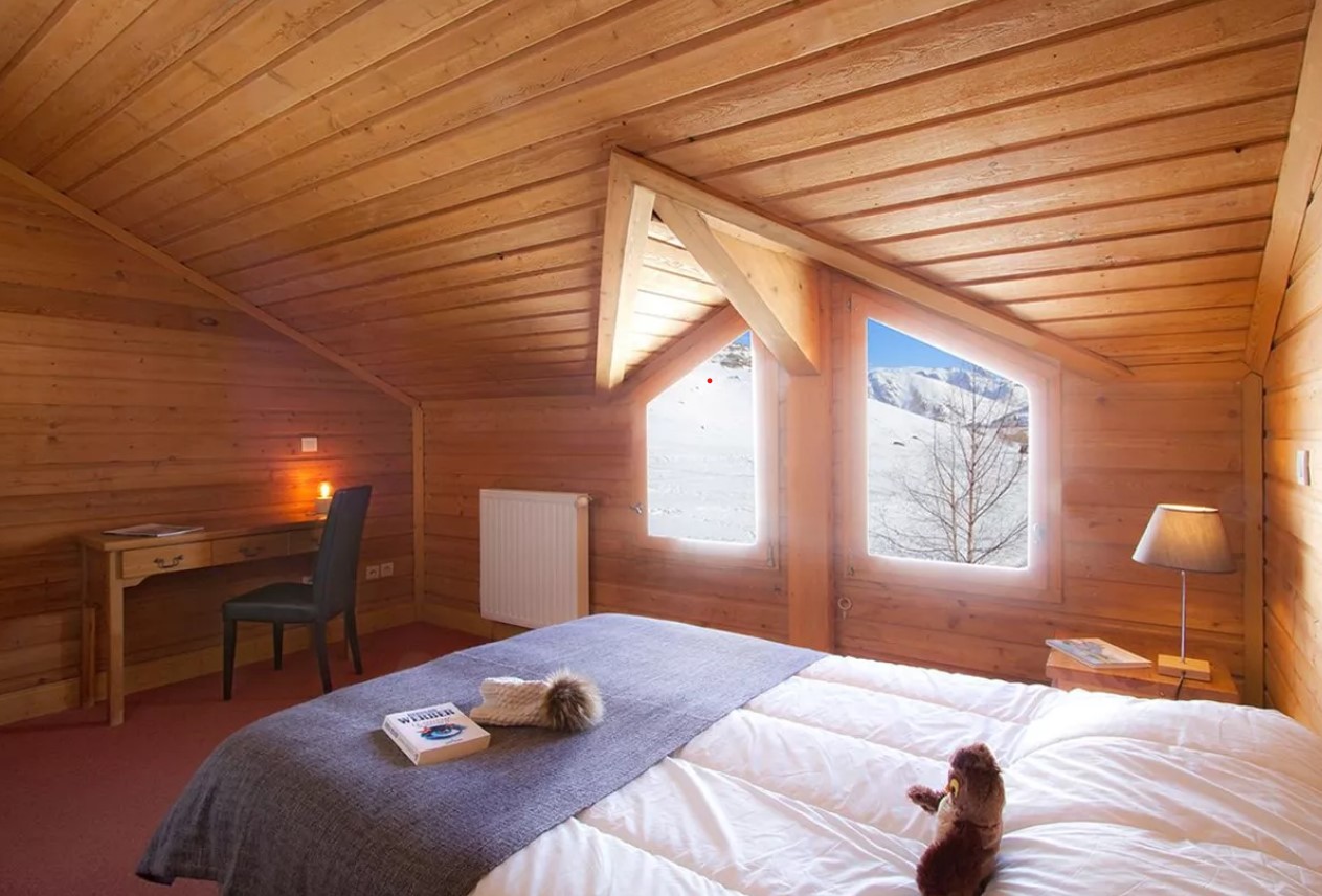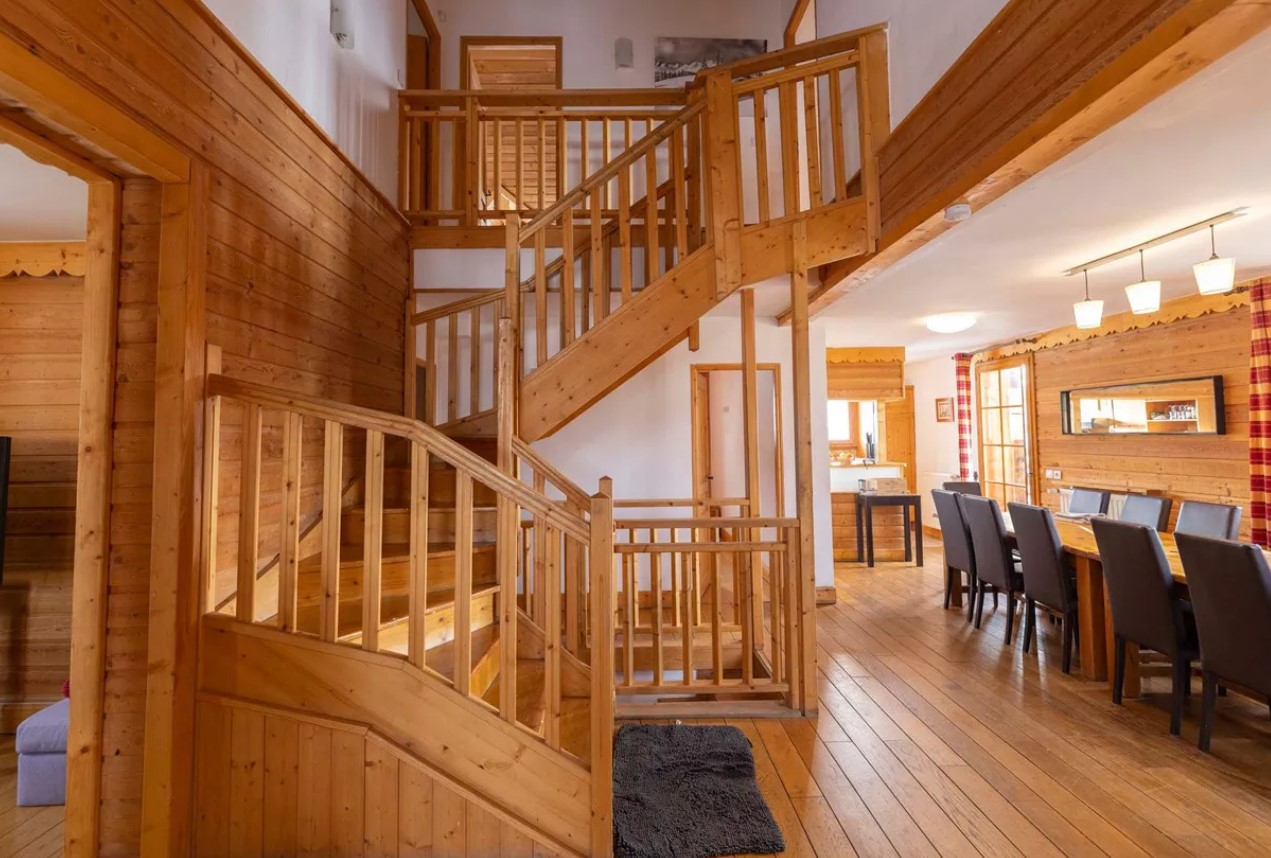 On 2 floors, the charming Chalet Diane (200m²) offers plenty of space and comfort sleeping up to 14 people. With a large living area with fireplace, fully equipped American kitchen, 7 bedrooms with bathroom and toilet, a south-facing terrace, private sauna and parking, you will find everything you need for the perfect ski holiday with family or friends.
