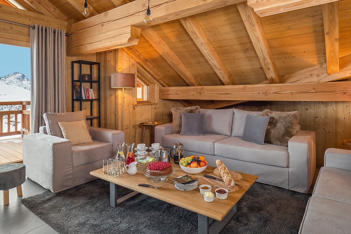 The chalet is comfortably and elegantly furnished with a spacious open plan living area, warm your toes in front of the open fire or curl up on the squashy sofas. All bedrooms can be made as twin or double and each has a balcony and flat screen TV.