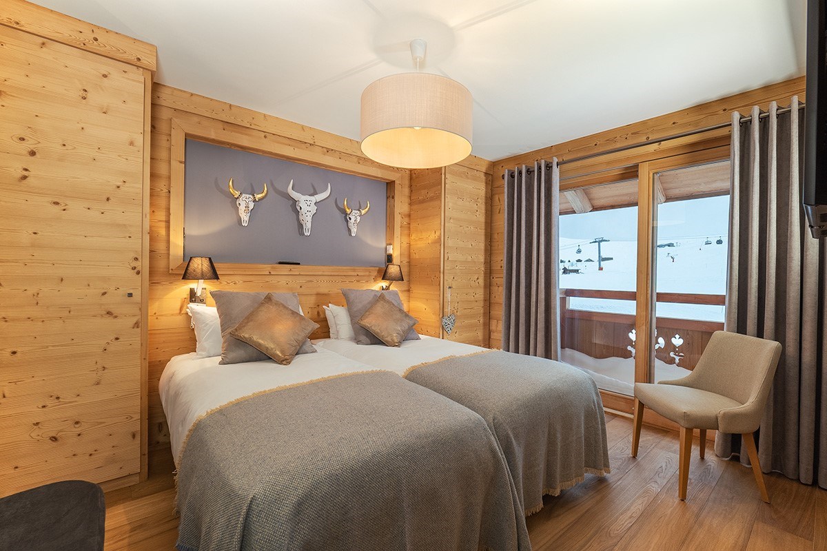 Eden West is a private chalet apartment in the sparkling new Eden Blanc property, part of the exclusive Fontbelle area of the resort. There is private lift access and stunning views of piste and mountain from the living room and bedroom balconies. This chalet apartment sleeps 6-8 guests with three en suite bedrooms, one of which has additional bunk beds (charged at half the adult price) making this an ideal space for two families or a group of friends.