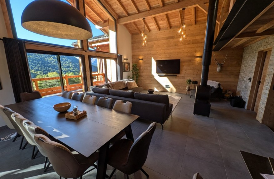 This stunning privately owned south facing chalet is rented Sunday to Sunday and has been luxuriously furnished with a sophisticated style that gives Chalet Sika a relaxed yet chic vibe. The open plan living area with huge windows overlooks the valley beyond and provides the perfect view. Being south facing the sun hits the slopes and offers the perfect spot to watch the sun set from the wrap around balcony.